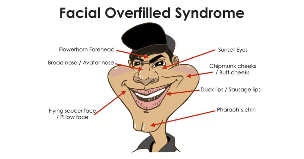 • Overfilled Cheeks = โหนกแก้ม และแก้มส้มล้น จนหน้ากลม ยิ้มแล้วแก้มดันขึ้นจนตาดูเล็ก